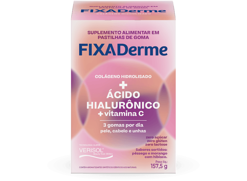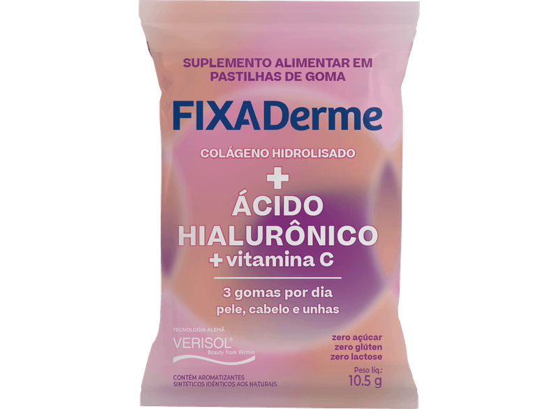 Você já imaginou que é possível cuidar da sua pele, unhas e cabelos de maneira fácil e prática?FixaDerme Hialurônico é um suplemento alimentar fácil de usar, com três gomas mastigáveis por dia, que melhora a saúde da pele, unhas e cabelos.