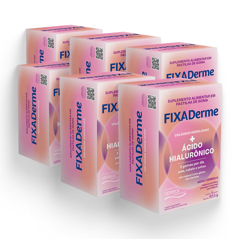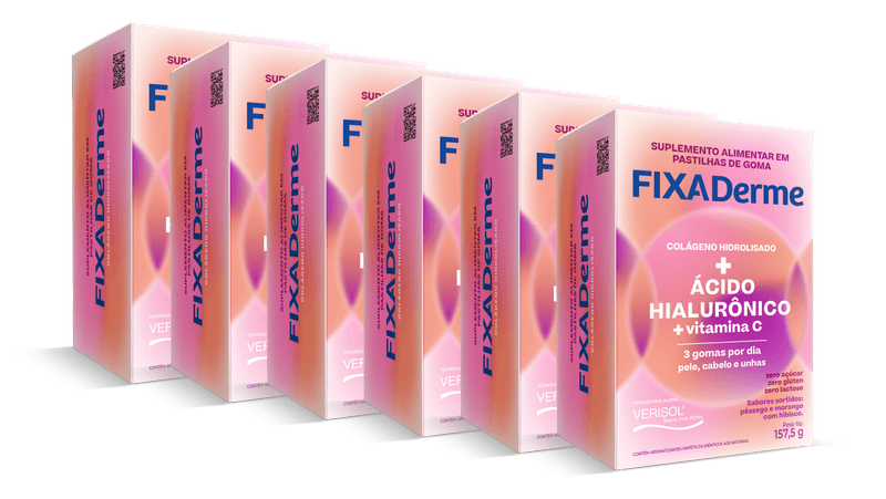 Você já imaginou que é possível cuidar da sua pele, unhas e cabelos de maneira fácil e prática?FixaDerme Hialurônico é um suplemento alimentar fácil de usar, com três gomas mastigáveis por dia, que melhora a saúde da pele, unhas e cabelos.